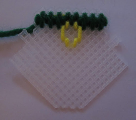 The bottom of the hat is next in green. The bottom of the hat at the two sides is stitched completely in this step.
